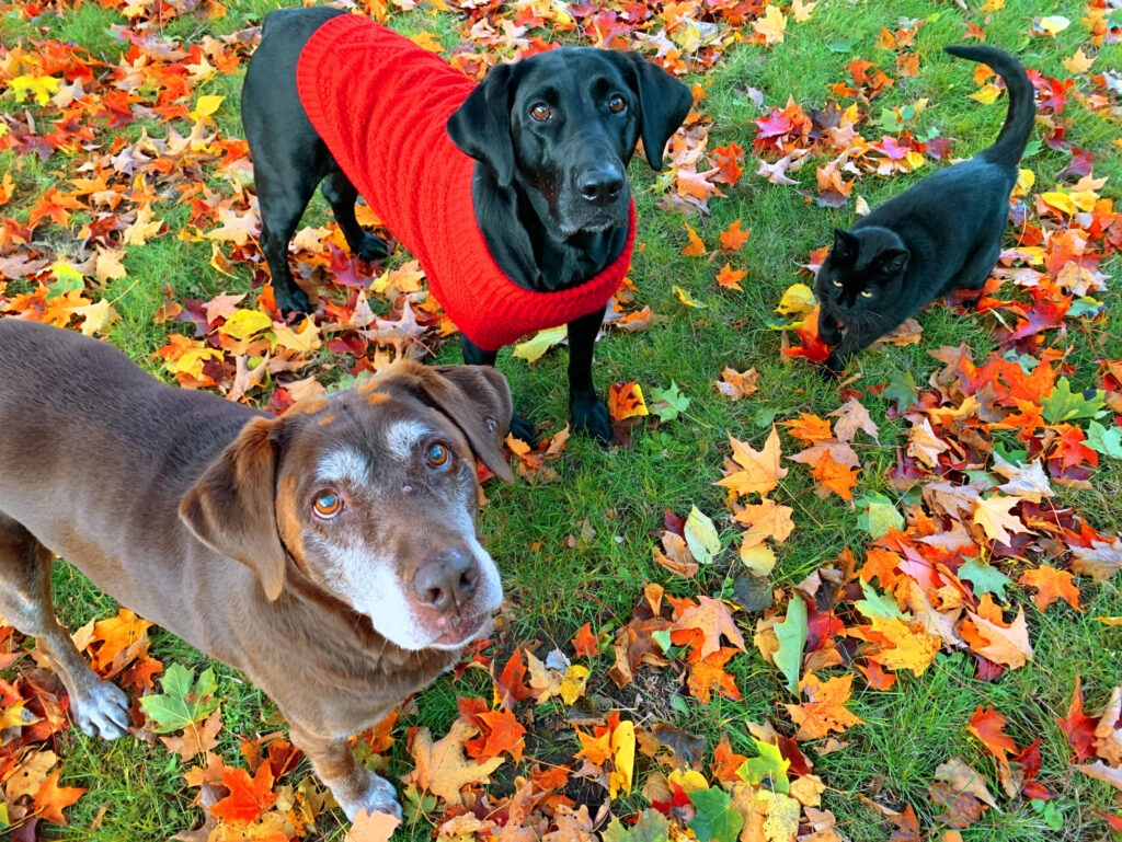 She’s a squatter– she came one day and didn’t leave. Once she decided, I had three generations of Labradors– Hershey, the grandmother, Elsie, the mother, and Schmiddy, the grandson.