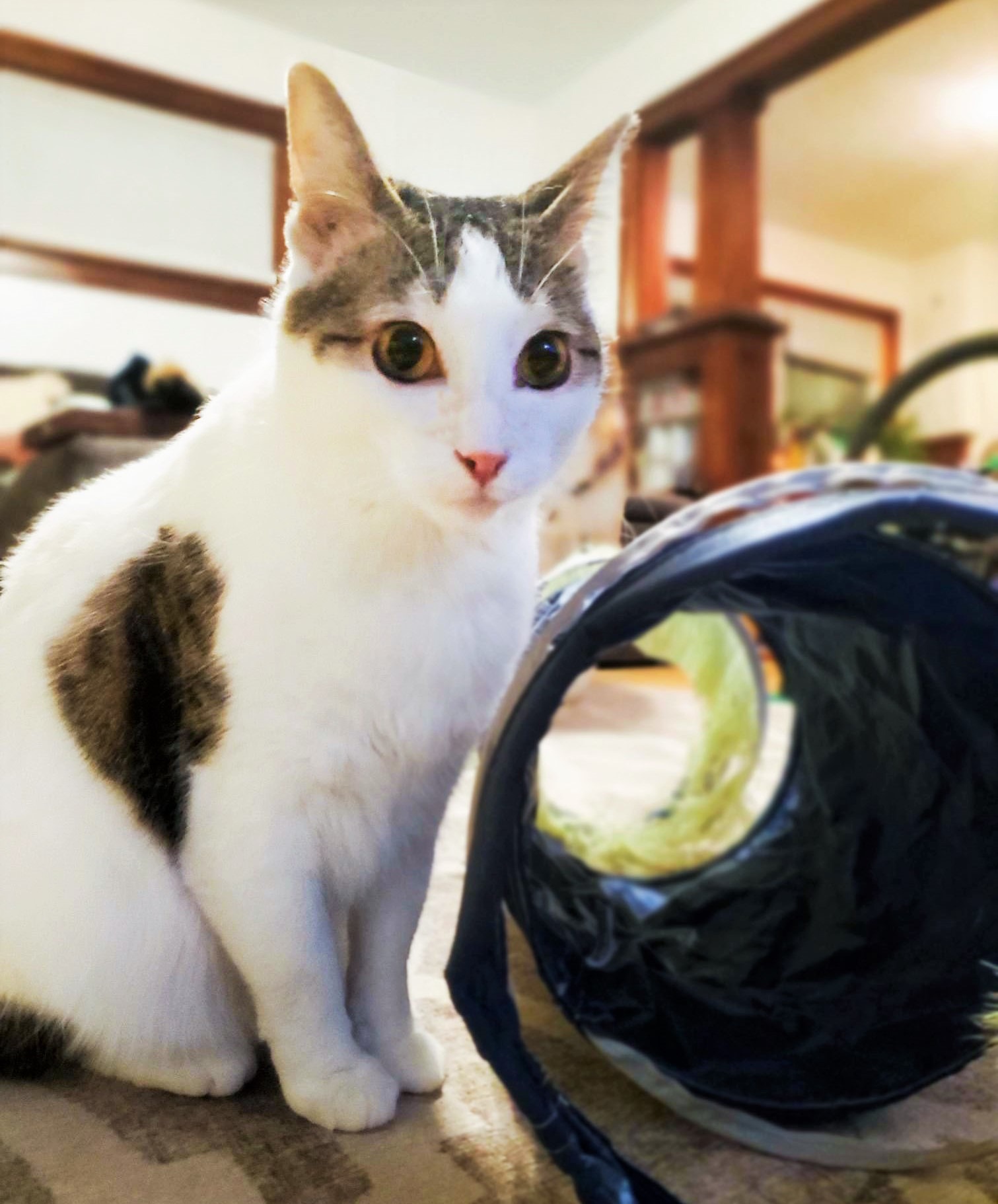 She’s friendly and outgoing to the majority of two-leggers who approach her, too. She’s always hoping they know exactly where to pet. If you guess wrong though, she doth protest loudly.
