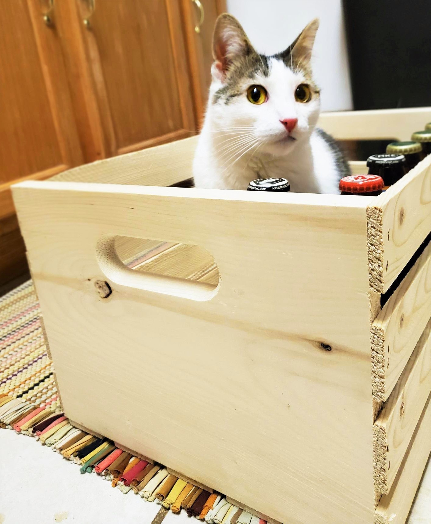 She’s very unapologetically herself. She’s curious– she can’t resist a small box, big box, or open cupboard. And when she finds herself in places she shouldn’t be, she’ll cry in protest when she’s removed from these new exploration spots.