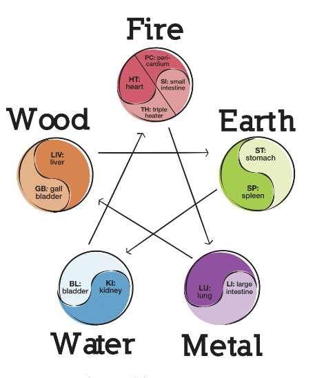 The five elements are applied not only to our personality traits but to the body as well. Each element is associated with a specific organ in the body; to be more precise, each element has specific solid and hollow organs related to it, typically to accent the yin and yang of each element.