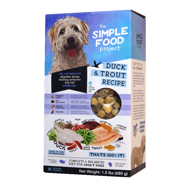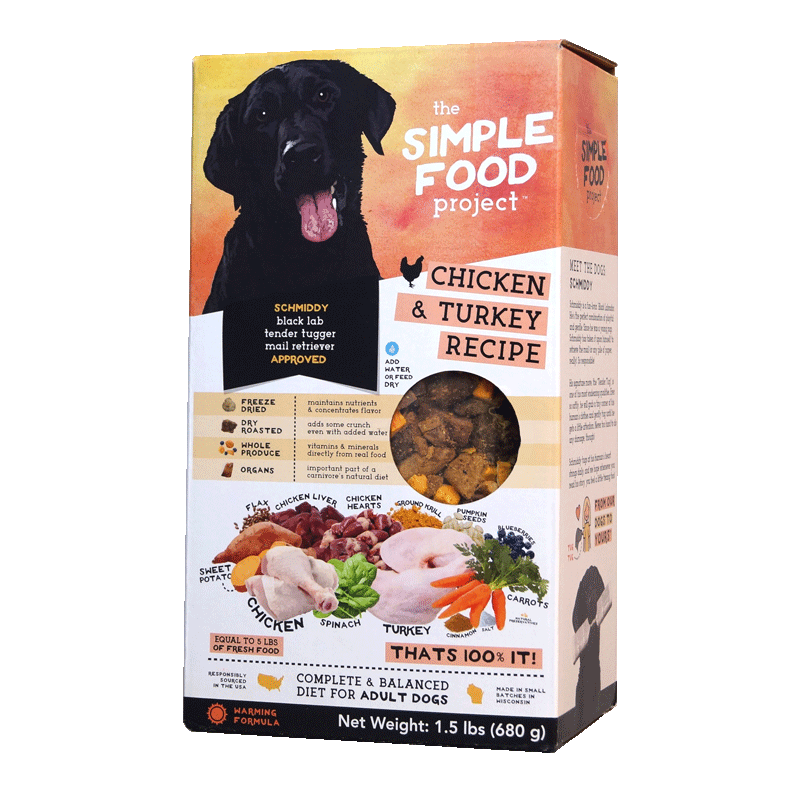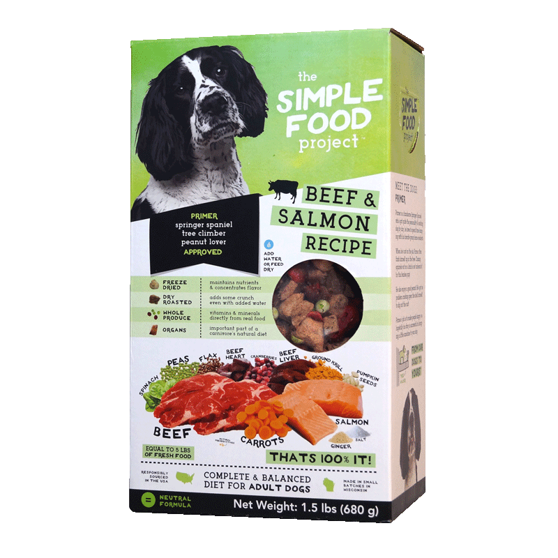 Simple Food Project diets are low in carb count and high in animal protein, both skeletal and organ meat. And you can rest assured knowing all his nourishment is coming from the 14 whole foods on the label and never synthetic vitamins or minerals. Give one of our recipes a try!