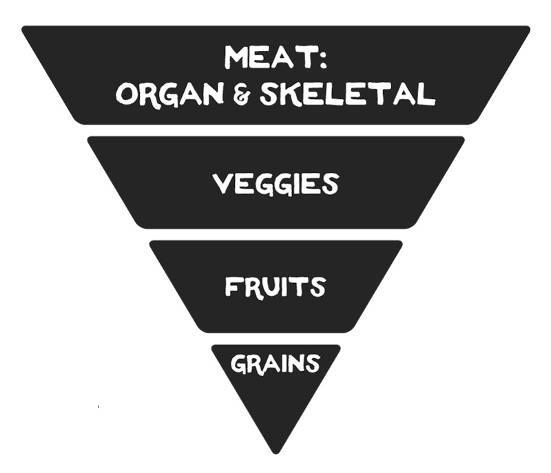 Check out the appropriate food pyramid for dogs. The majority of their diets should consist of animal protein, followed by veggies and fruits, and finished with a very small of amount of grains.